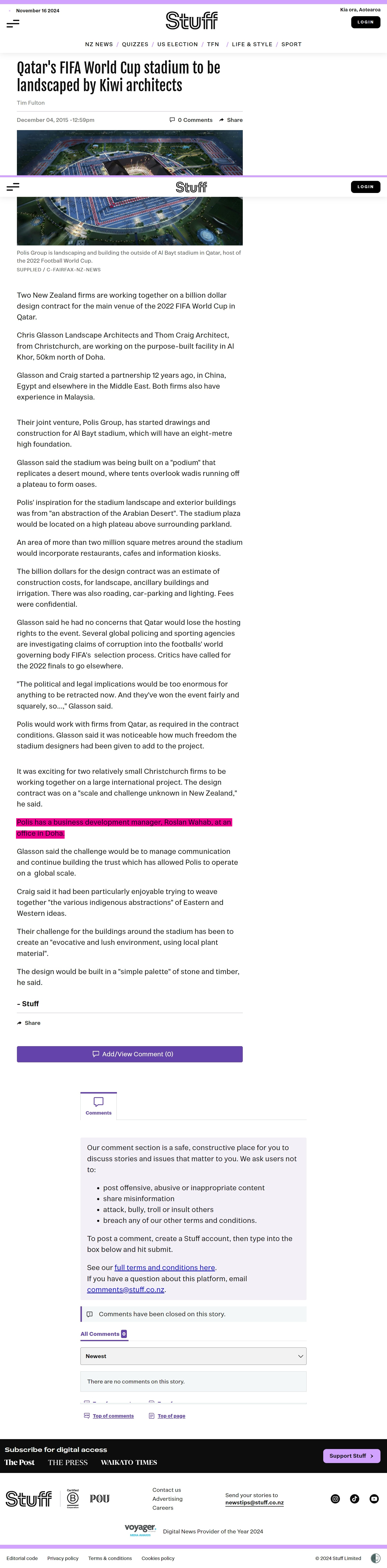 Polis Group design the landscape for Al Bayt Stadium, Doha, Qatar