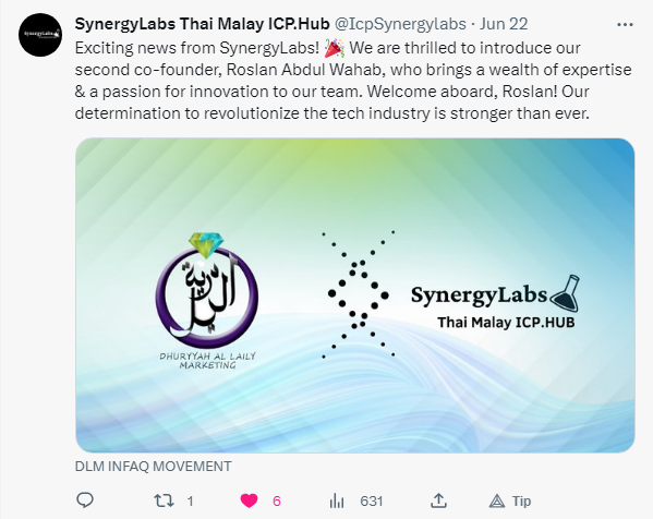 In June 2023, I successfully got the grant and I was invited to be a co-founder with a representative of Dfinity Foundation called SynergyLabs Thai-Malaysia ICP Hub which is based in Thailand. The announcement was made on Linked-in and Twitter.
