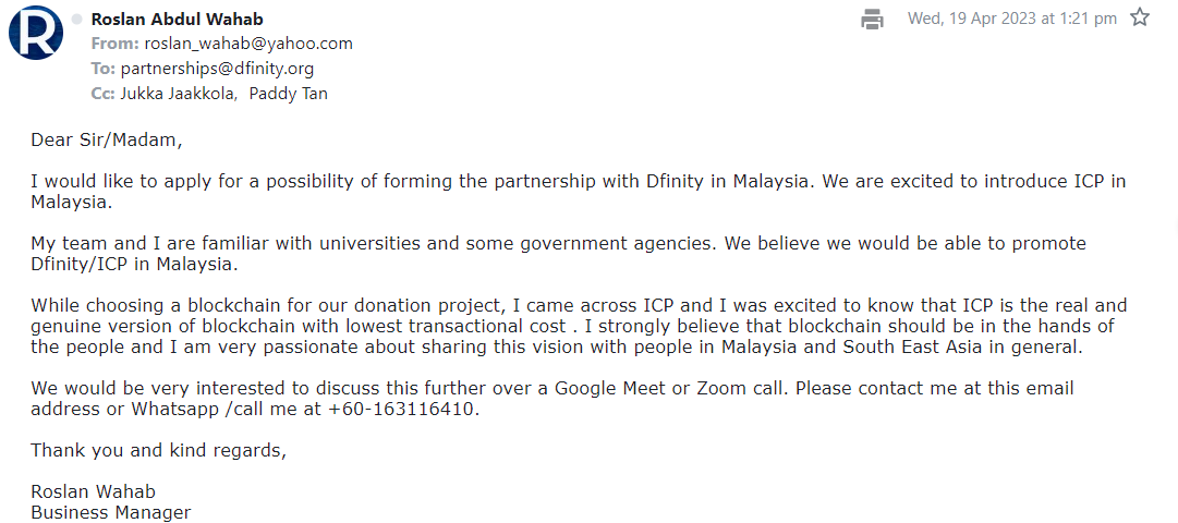 I am so much into it that I was encouraged by a Dfinity team member (Switzerland based) to apply for a Community Grant which I did. I got offered a grant of 8K to teach the universities in Malaysia. And I was also appointed as a Co-Founder of SynergyLabs TH MY ICP Hub in Jun 2023.