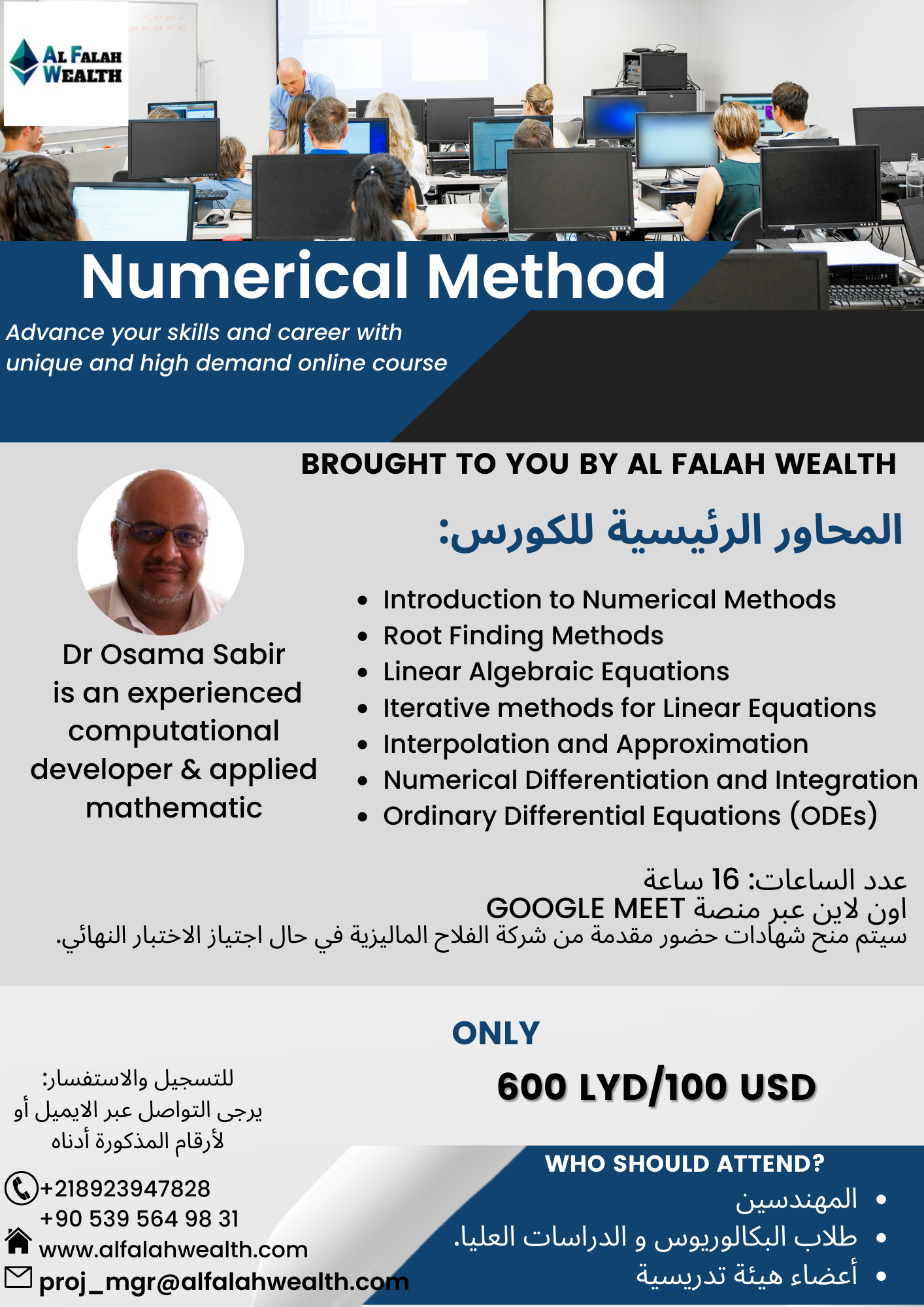 As part of our activities in our new branch in Libya, Al-Falah R&D, in cooperation with the Al-Hurra Center, is organizing the first face-to-face course entitled: